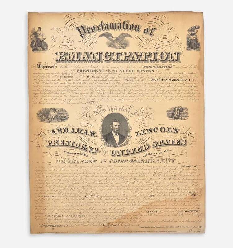 The Library of Congress records a further variant, not recognized in Eberstadt, that retains Lincoln's signature, the "Northern District of Illinois" imprint, as well as Kidder's later Chicago address (Lincoln, A. [1865] A. Kidder copy of the Emancipation proclamation. Copy 3. A. Kidder, New York and Chicago, Illinois).