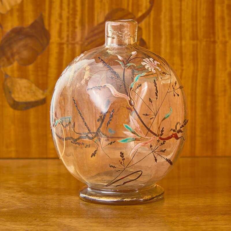 Émile Gallé An Enameled "Flowers and Dragonfly" Bottle or Vase, France, circa 1880