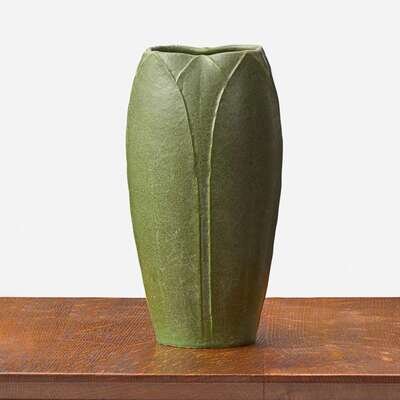 Norma Peirce for Grueby Faience Company Vase with Leaves, USA, 1904-10