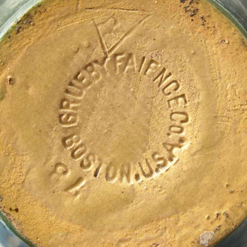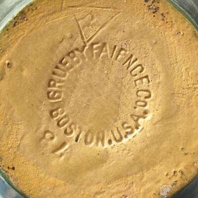 Circular manufacturer's mark: "Grueby Faience Co. Boston U.S.A.", impressed: "73", incised maker's mark: "P" within triangle