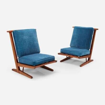 George Nakashima Pair of "Conoid" Cushion Chairs, New Hope, Pennsylvania, 1976