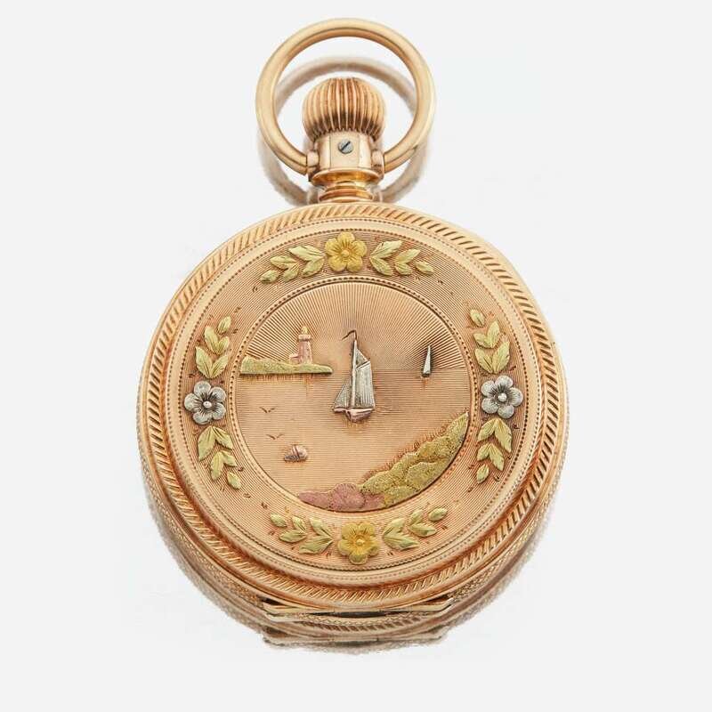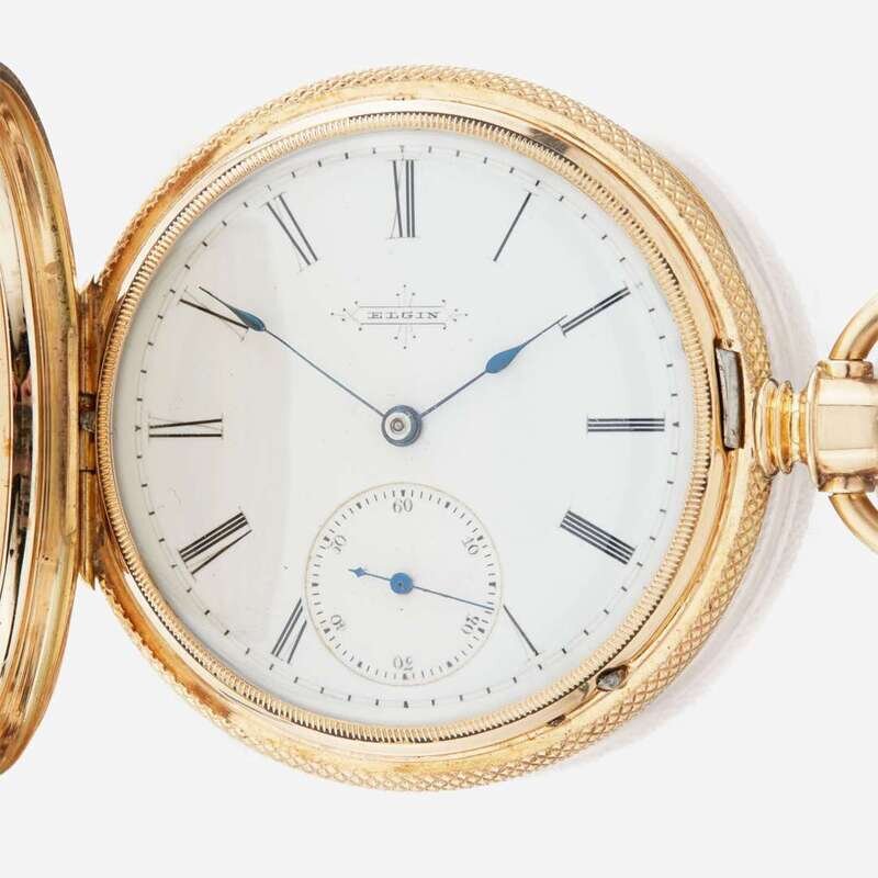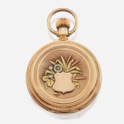 A tricolor hunting case gold pocket watch, Elgin American, C.1878