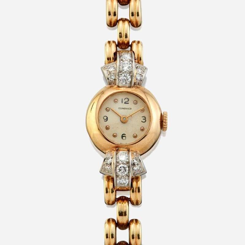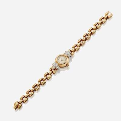 A lady's gold and diamond bracelet watch, Gumbiner Retro