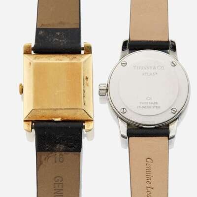 A collection of two leather bracelet wristwatches, Tiffany & Co, Atlas Schaffhausen International Watch Co.