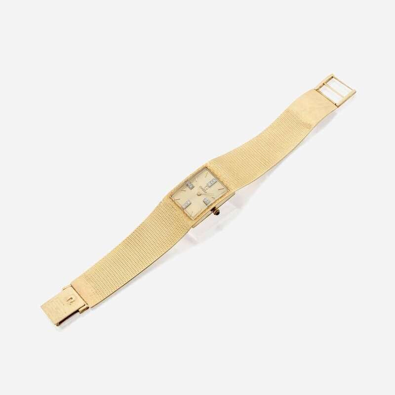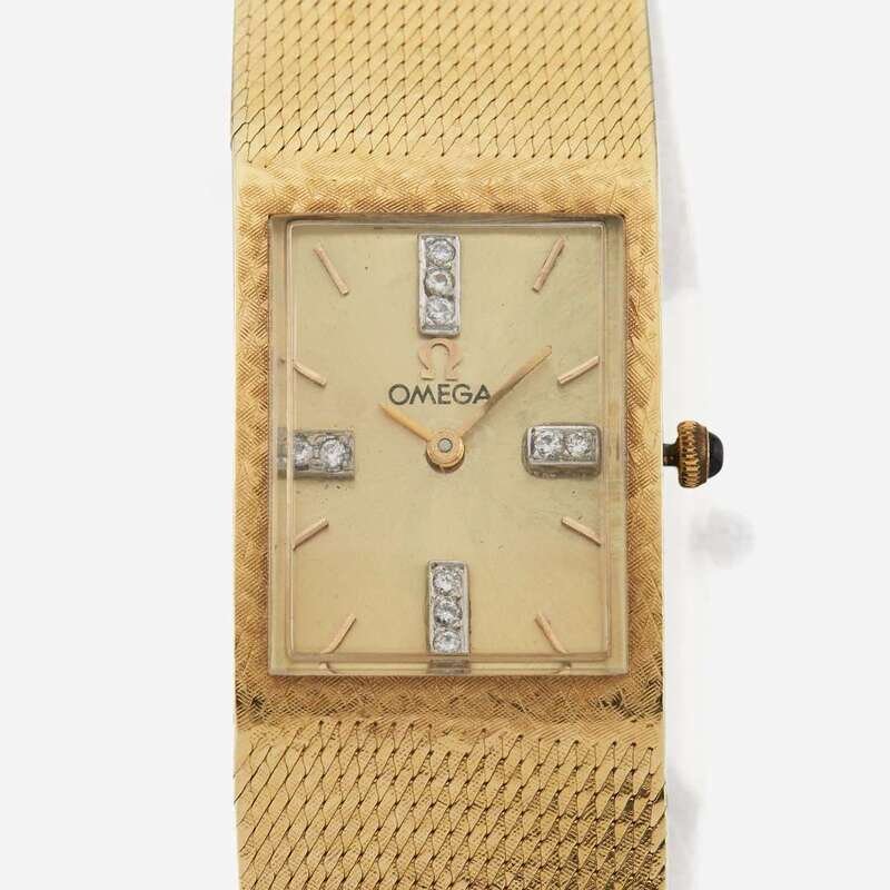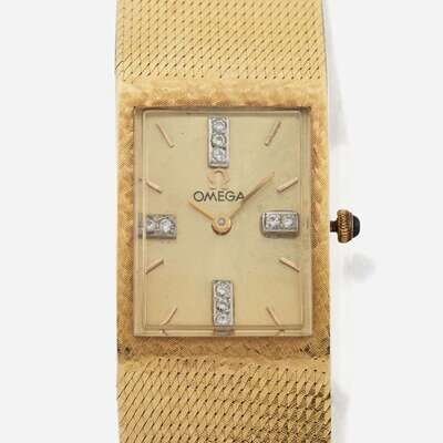 A gentleman's fourteen karat gold and diamond bracelet wristwatch, Omega