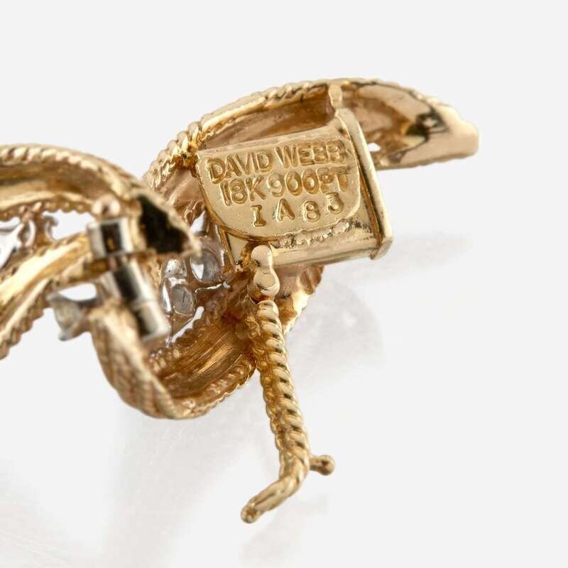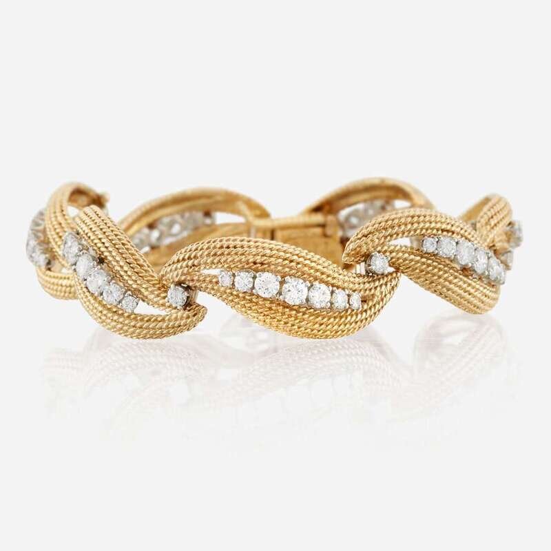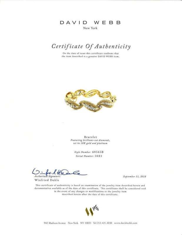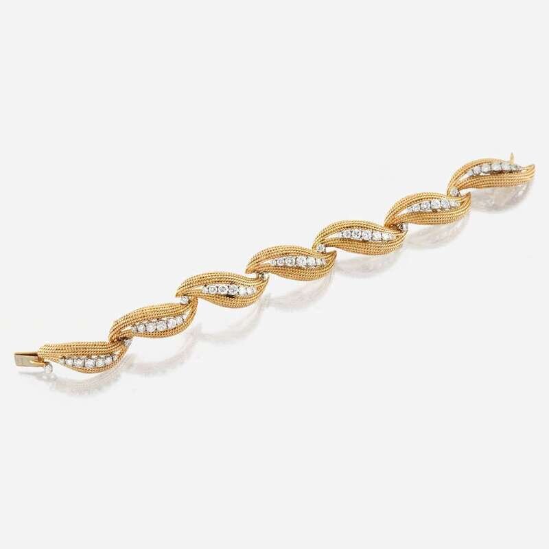designed as textured 18K gold links set to the top with round brilliant-cut diamonds mounted in platinum; estimated total diamond weight: 3.75 carats.