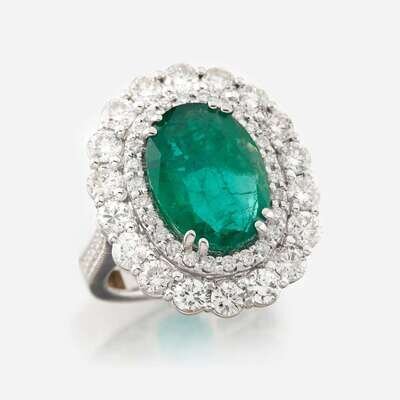 An emerald, diamond, and white gold ring