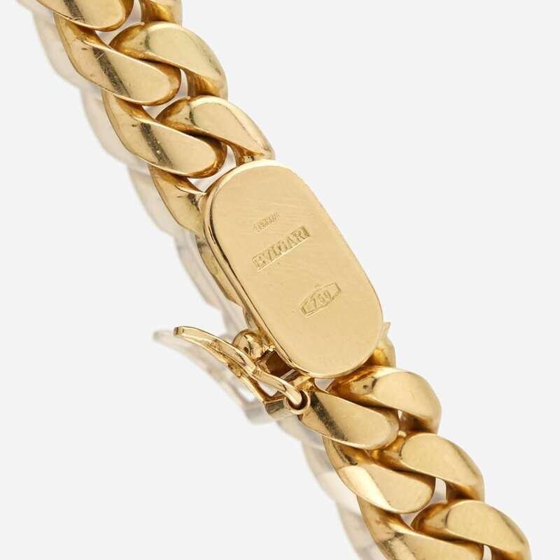 designed as an 18K gold curb link chain bezel set with oval cabochon sapphires; estimated total sapphire weight: 8.00 carats.