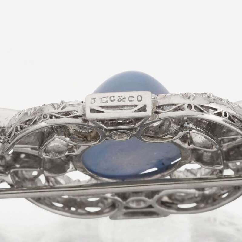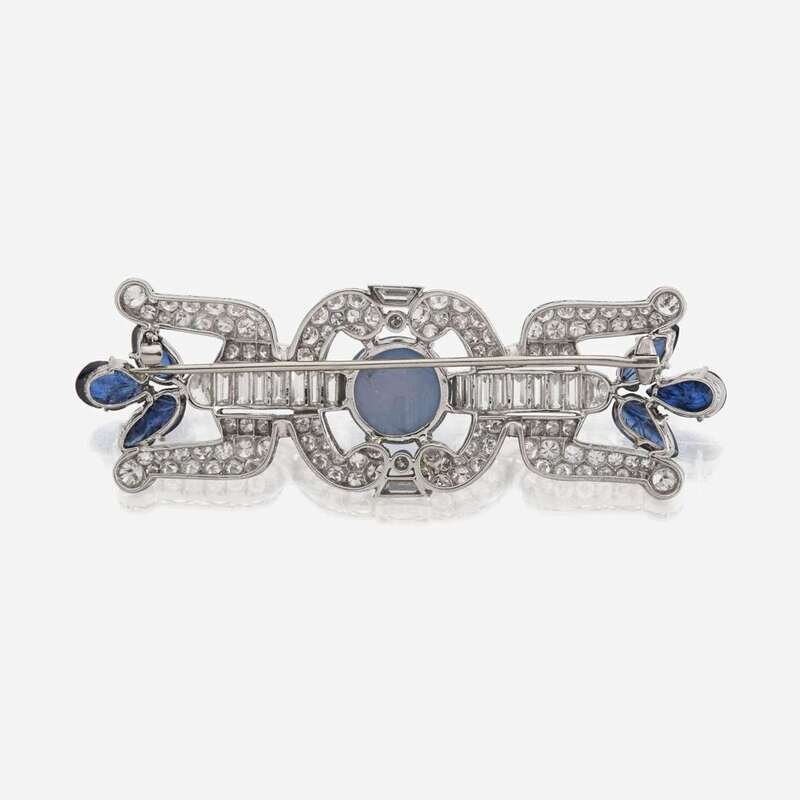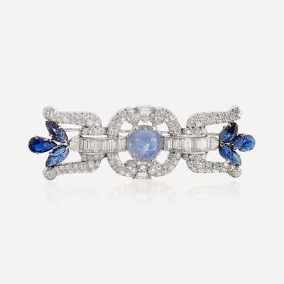 A star sapphire, sapphire, diamond, and platinum brooch, J.E. Caldwell & Co.