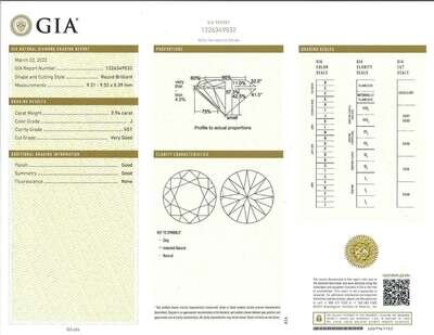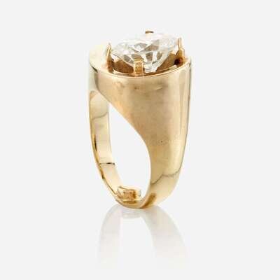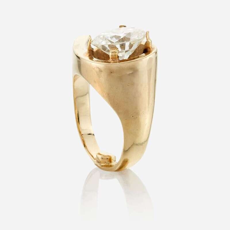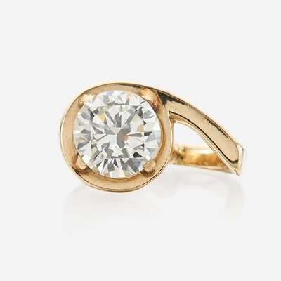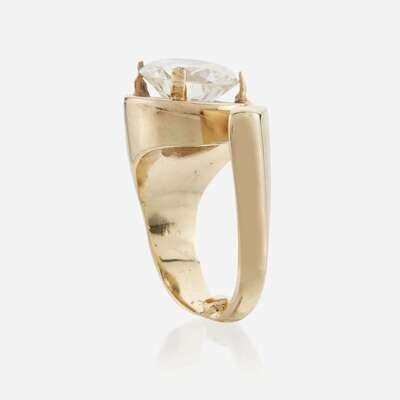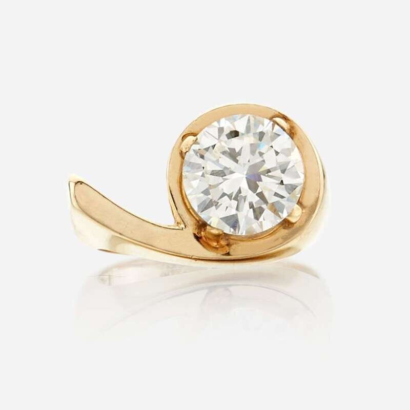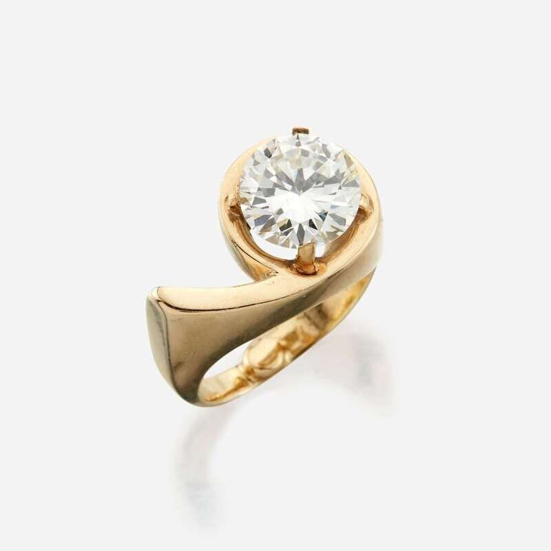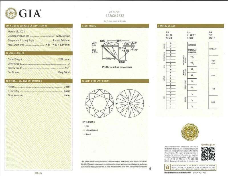 centering a round brilliant-cut diamond weighing 2.94 carats, mounted in heavy 18K gold.