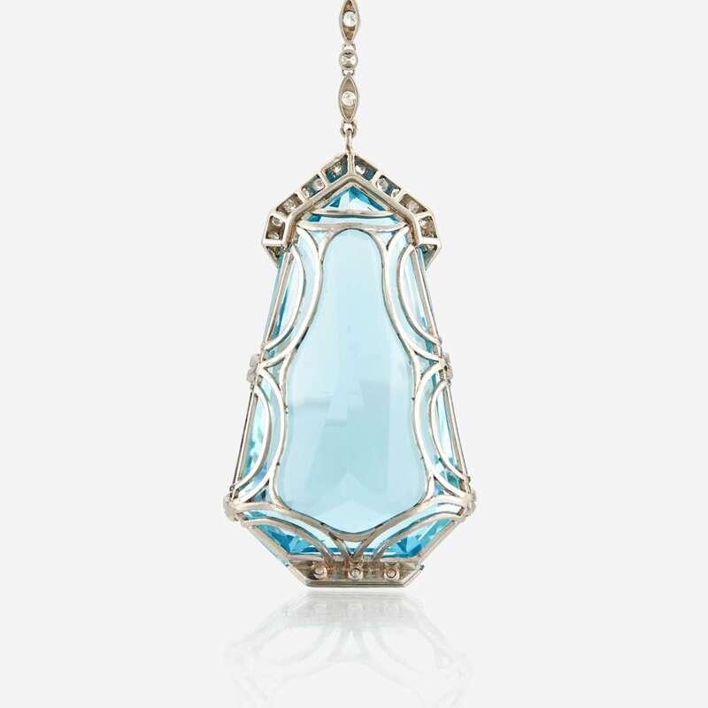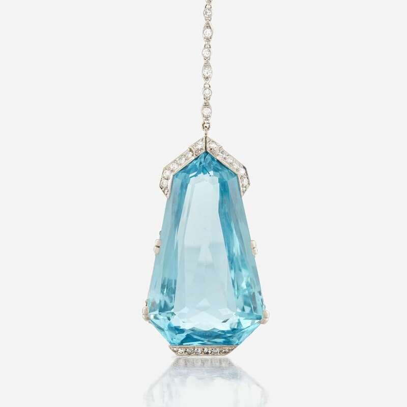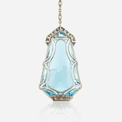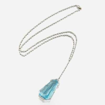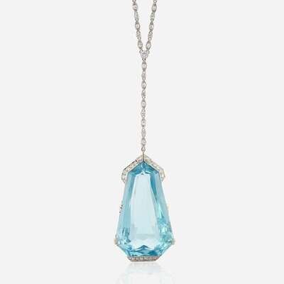 A diamond, aquamarine, and palladium pendant necklace, Tiffany & Co.
