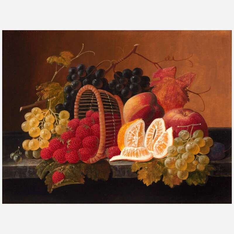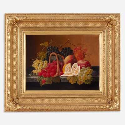 Severin Roesen (American, 1815–1872) Still Life with Fruit and Overturned Basket on a Marble Ledge