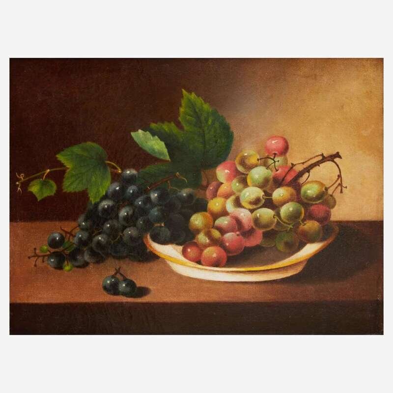 Margaretta Angelica Peale (American, 1795–1882) Still Life with Black and Green Grapes in a Plate on Tabletop