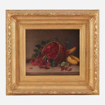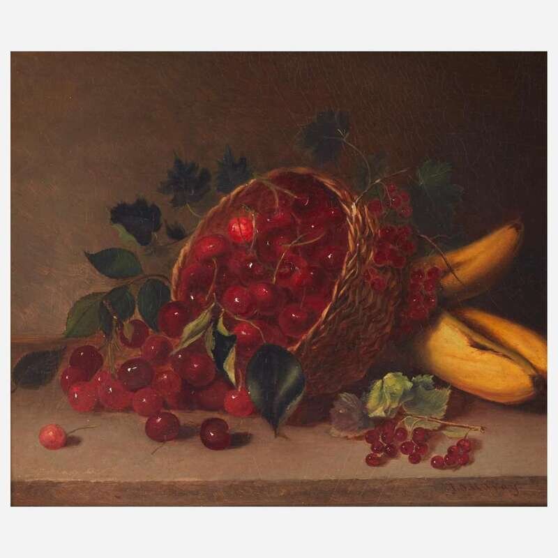 Andrew John Henry Way (American, 1826–1888) Still Life with Bananas and Cherries in an Overturned Basket on Tabletop