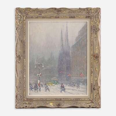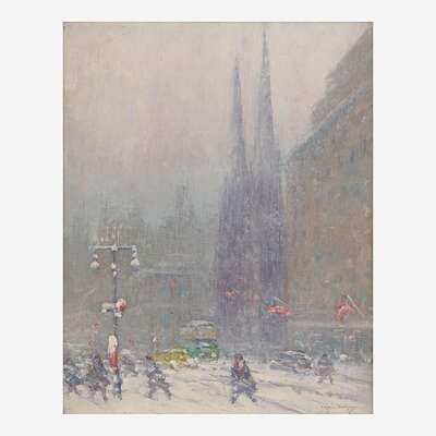 Johann Berthelsen (American, 1883–1972) New York Under Snow - St. Patrick's Cathedral