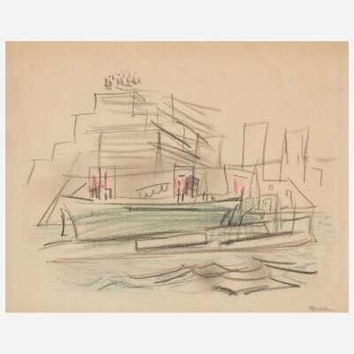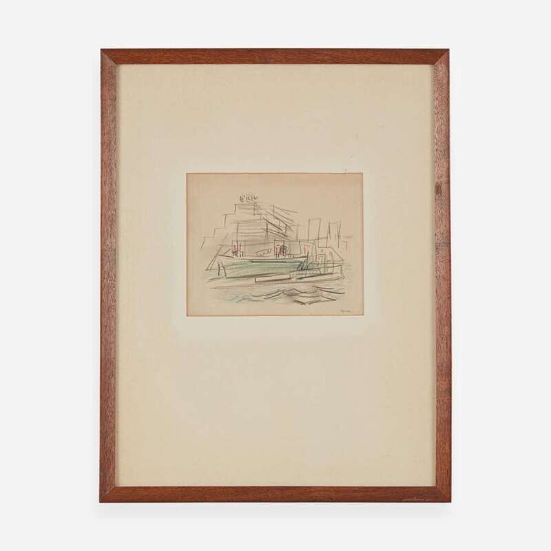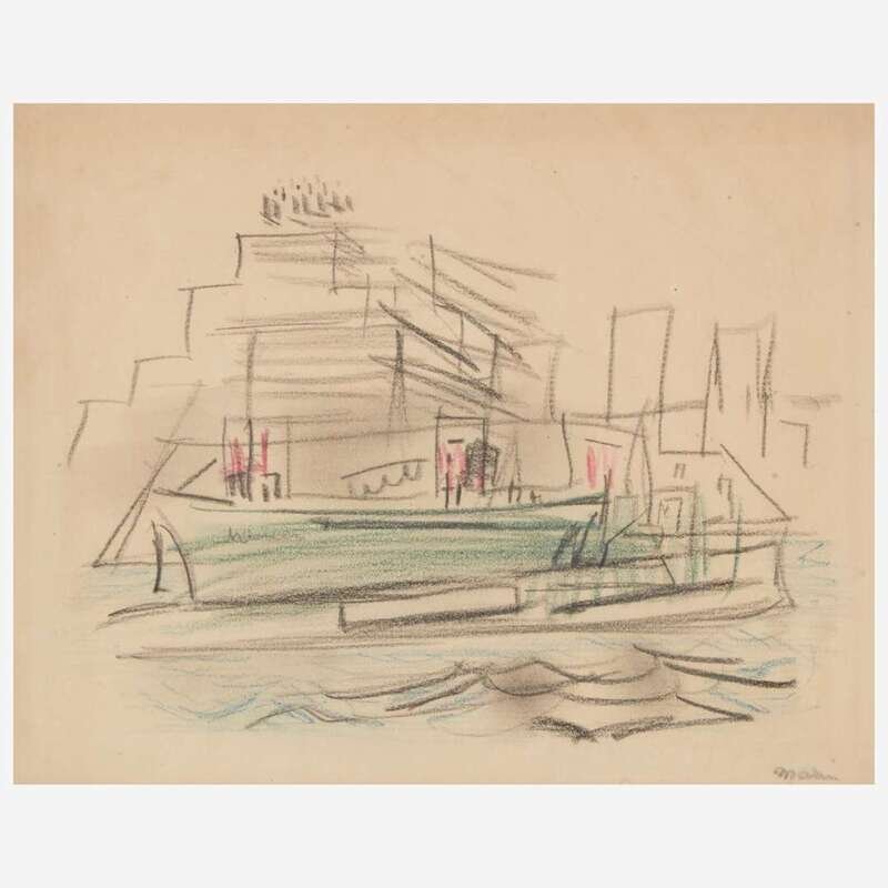 Signed 'Marin' bottom right, colored crayons on laid paper laid down to board