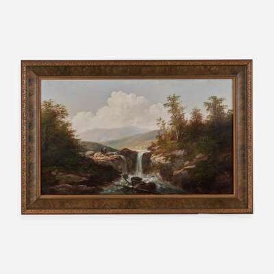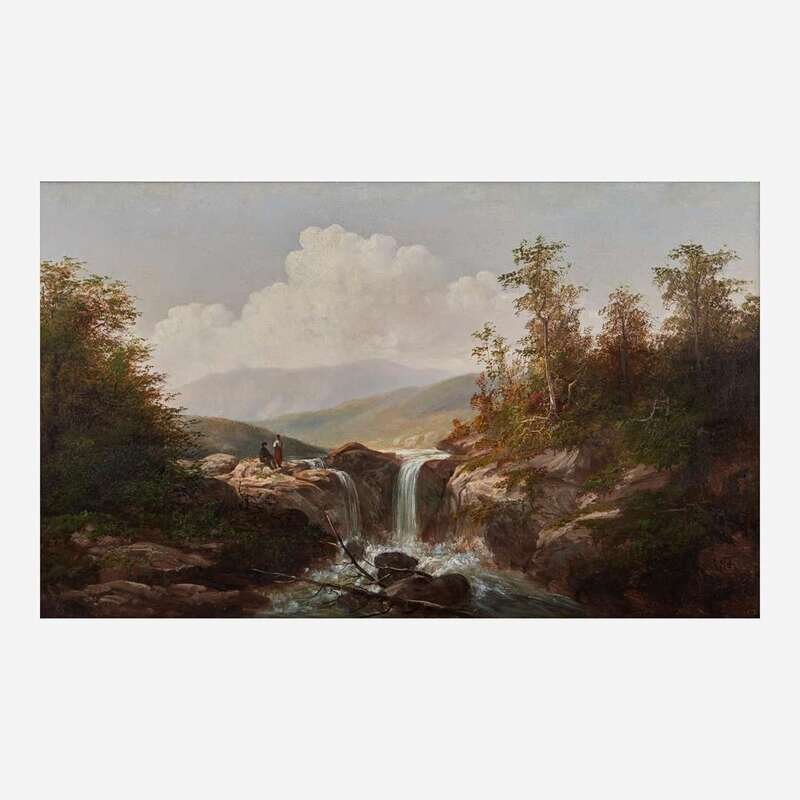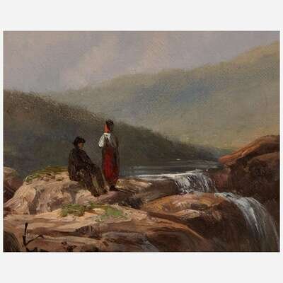 William Charles Anthony Frerichs (American, 1829 - 1905) Couple by a Waterfall