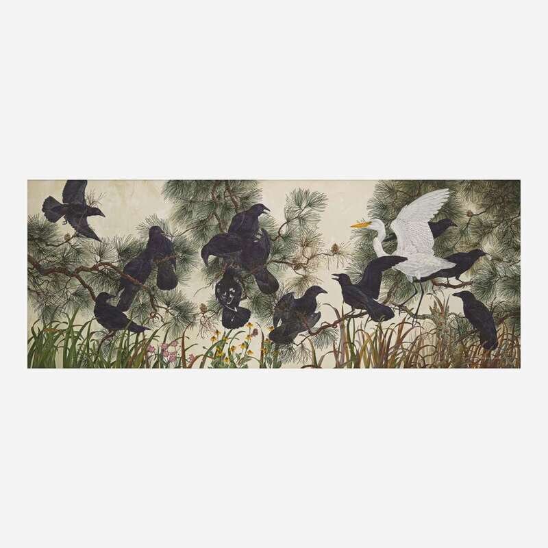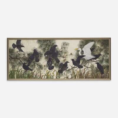 Robin Hill (American/Australian, B. 1932) Crows and American Egret