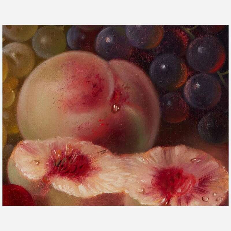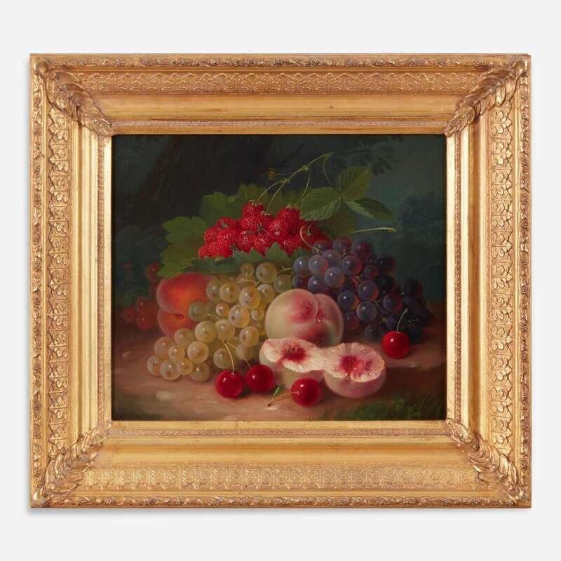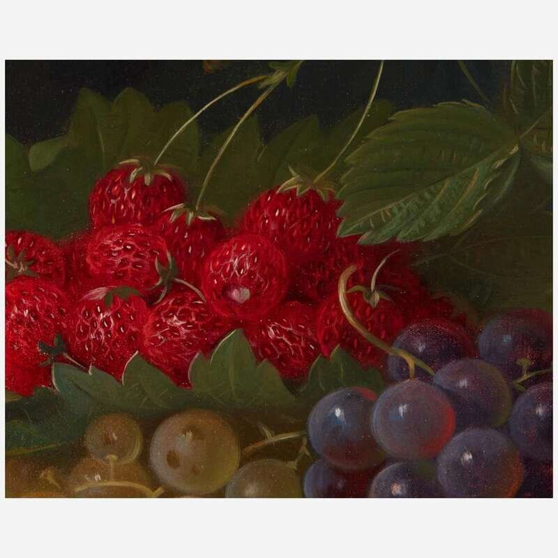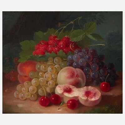 George Forster (American, 1817–1896) Still Life with Peaches, Strawberries, Grapes and Cherries in a Landscape