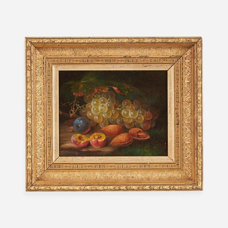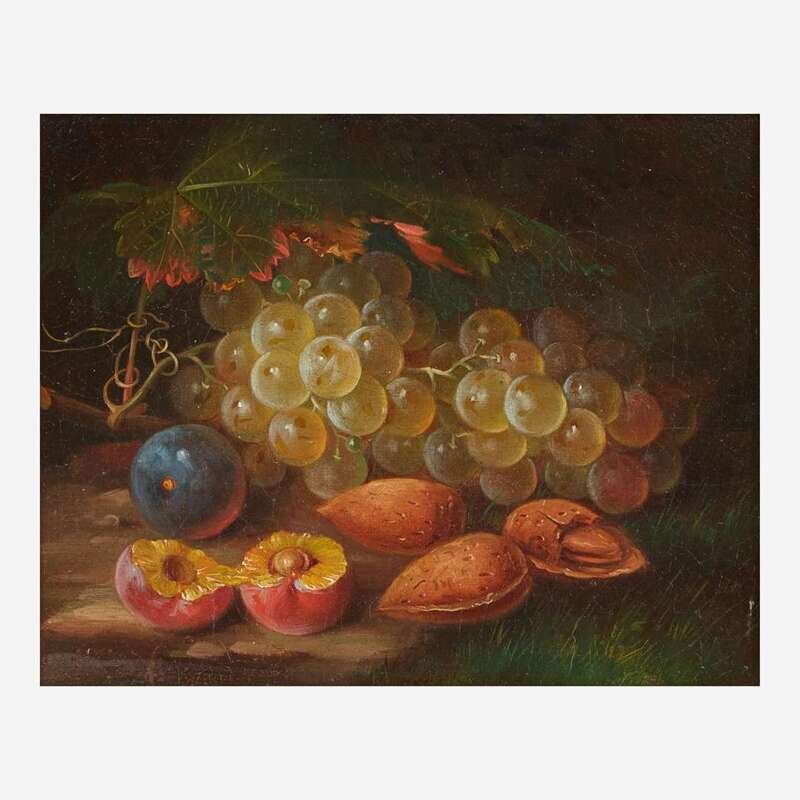 George Forster (American, 1817–1896) Still Life with Grapes, Plums, and Almonds in a Landscape