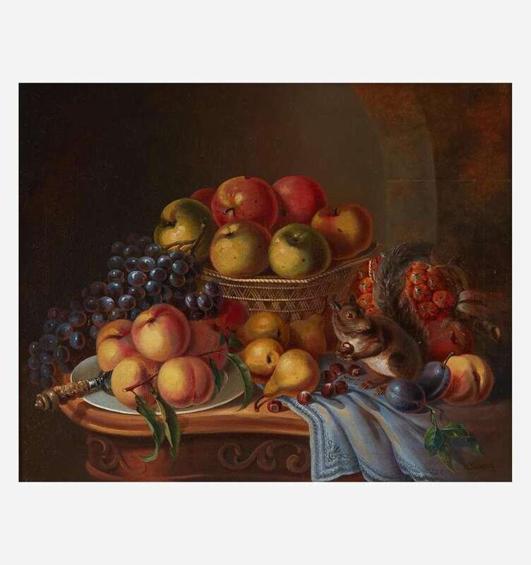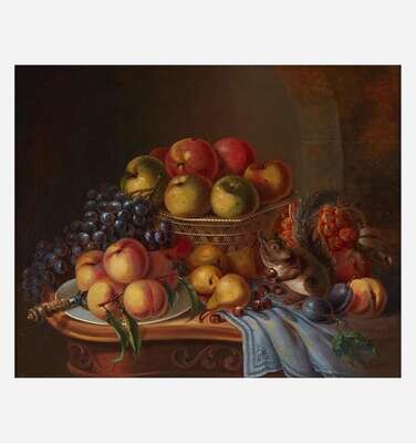 William M. Lanning (American, B.C. 1837-1860) Still Life with Fruit and Squirrel