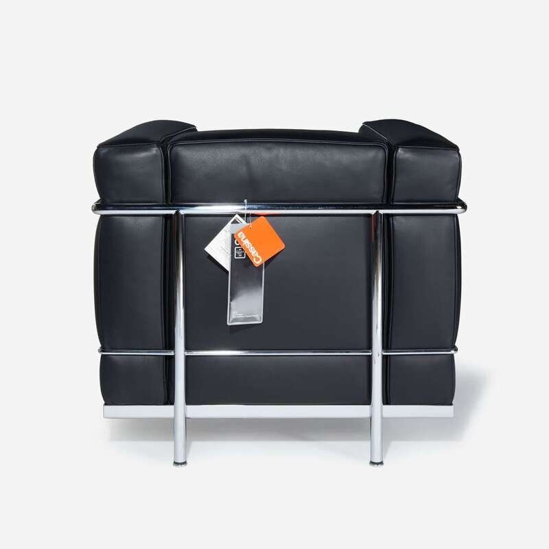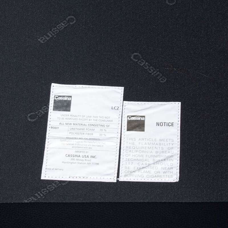 Frames with stamped markings "Cassina LC2 No. 137202 Le Corbusier ® Made in Italy" and "Cassina LC2 No. 137202 Le Corbusier ® Made in Italy"