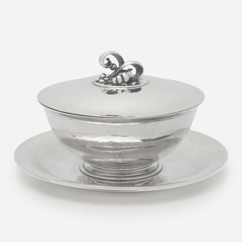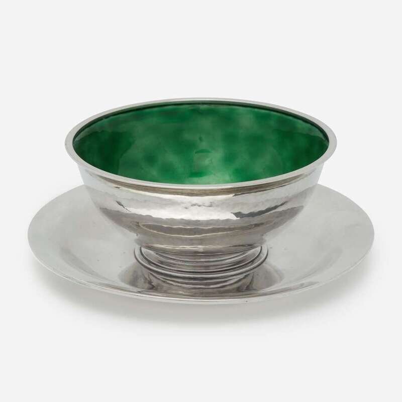 Harald Nielsen for Georg Jensen Silver and Enamel Covered Bowl, Model 499B, Denmark, circa 1930-45