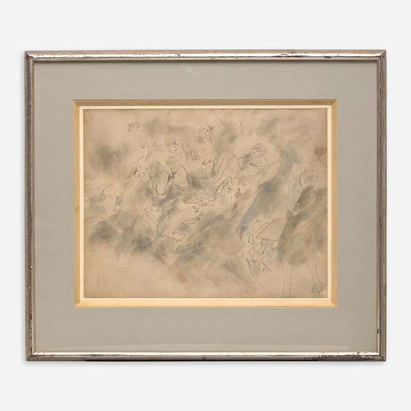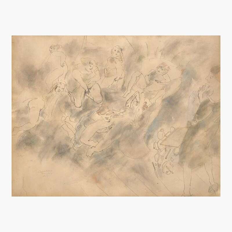 Inscribed 'Pascin Estate, May 13/31, #77' bottom left, ink and wash on paper.
