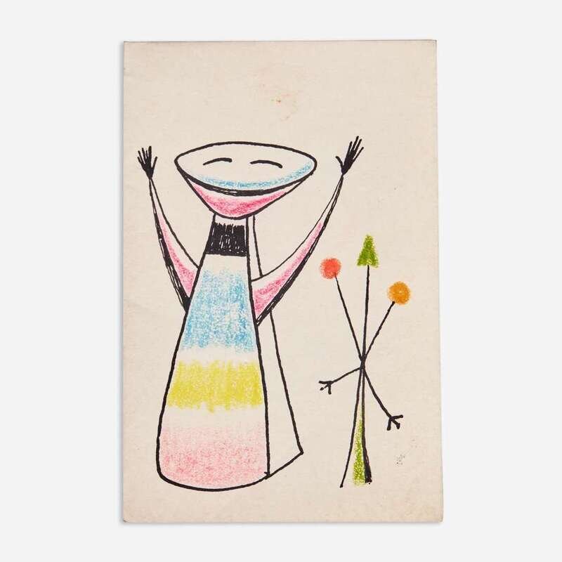 Signed and inscribed 'Merry Christmas and Happy New Year, Lucy and Attilio Salemme' inside. Crayon and ink on paper.