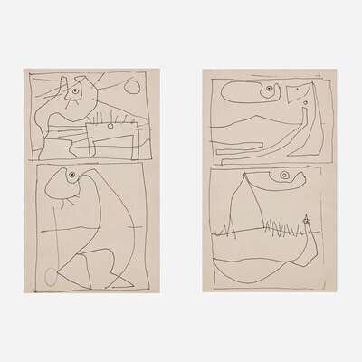 Ink on paper, three drawings under two mounts.