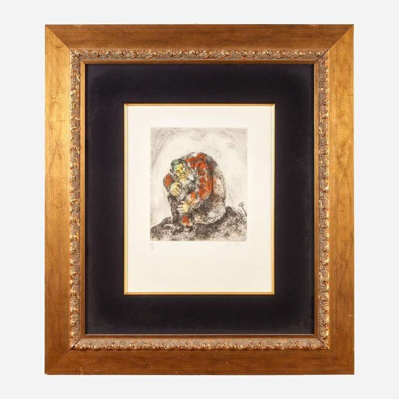 1956, pencil signed and editioned 76/100, Tériade/Raymond Haasen, Paris, publisher. Etching and aquatint with hand coloring in watercolor on Arches.