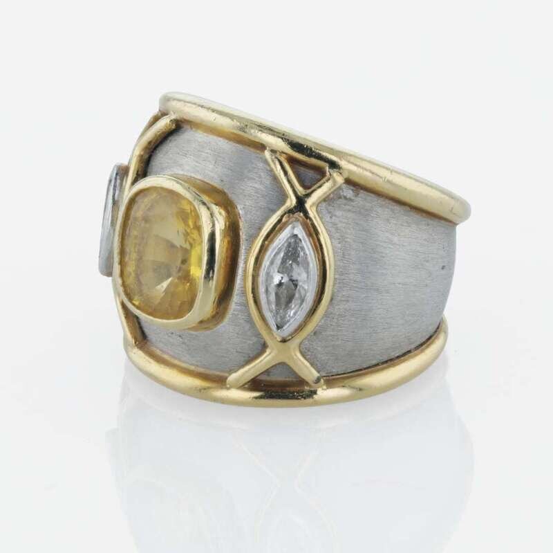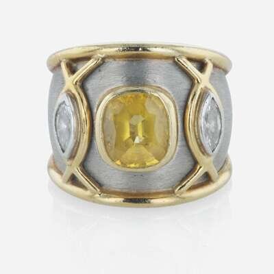 An 18K yellow gold, platinum, yellow sapphire, and diamond ring, Boris LeBeau