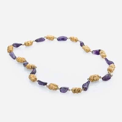 An 18K, yellow gold and amethyst necklace Arezzo in Italy
