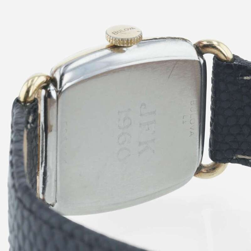 The back case engraving reads "JFK1960". The watch was a gift from John F. Kennedy to the former speaker of the House of Representatives, John W. McCormack, as a "thank you" for Mr. McCormack's efforts in JFK presidential campaign. The watch was presented to a close friend, Mr. Francis X. McCabe, who also helped with JFK's presidential campaign.