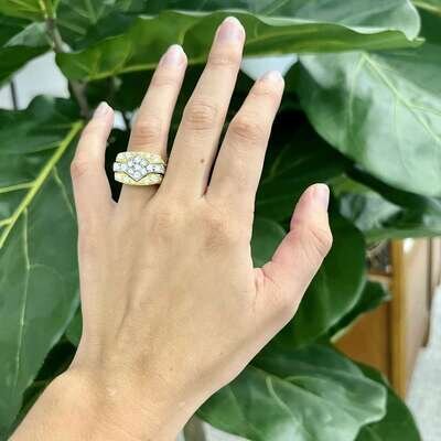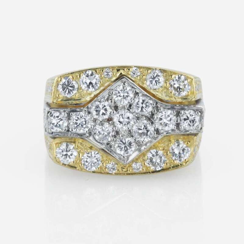 designed with a rectangular top, set with forty-nine round brilliant-cut diamonds; estimated total diamond weight: 0.65 carats.