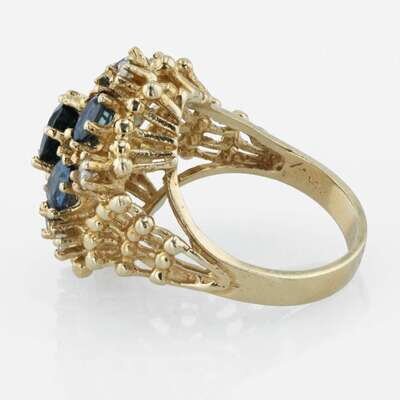A 14K yellow gold, sapphire, and diamond ring
