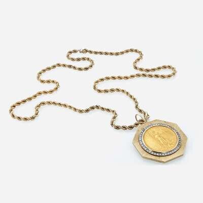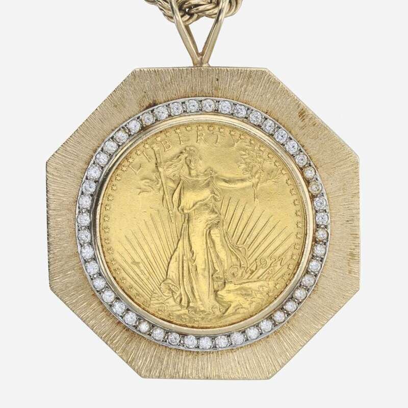 A 1927 St. Gaudens $20 gold coin and diamond necklace