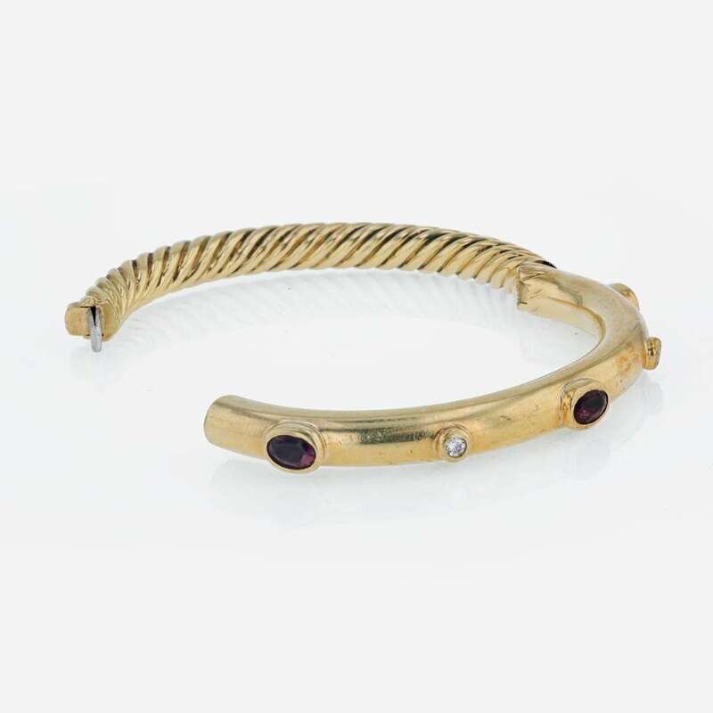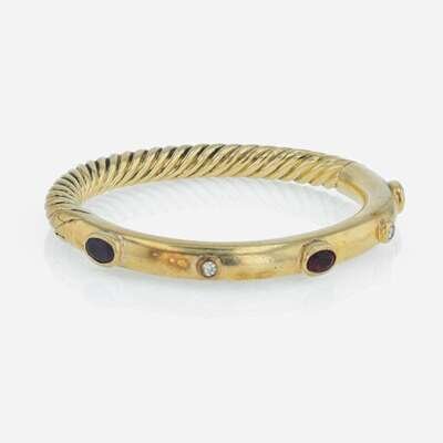 An 18K yellow gold, pink tourmaline, and diamond bangle, David Yurman