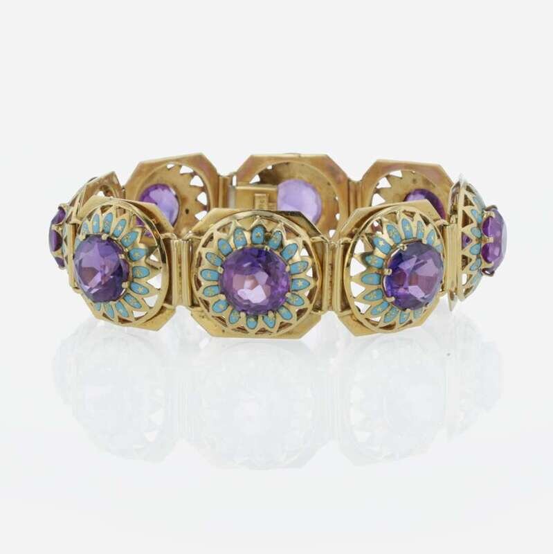 An 18K yellow gold, synthetic sapphire, and enamel bracelet