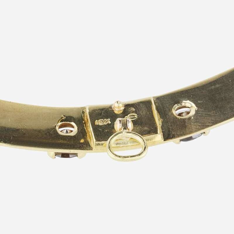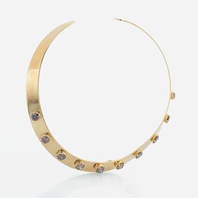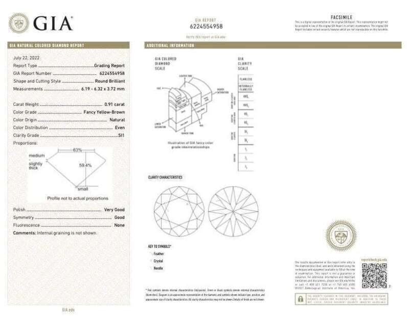 bezel-set with ten natural fancy yellow-brown round brilliant-cut diamonds; estimated total diamond weight 10.50 carats.
