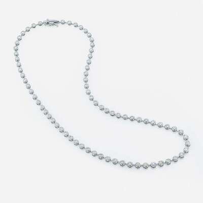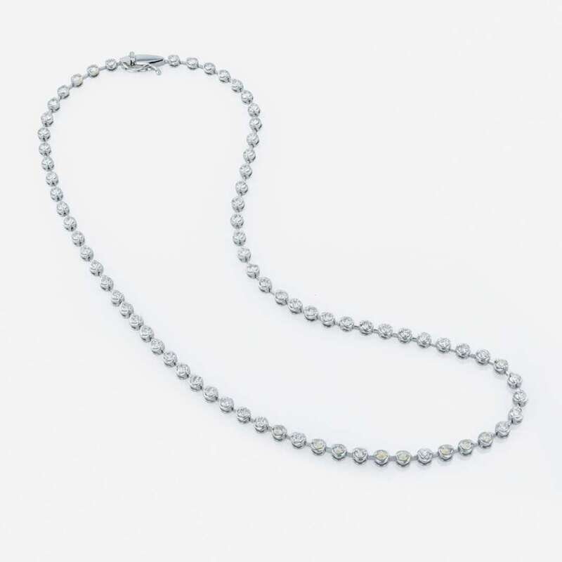 designed as eighteen karat white gold circular links connected by bars, each link set with a round brilliant-cut diamonds; estimated total diamond weight: 6.00 carats.