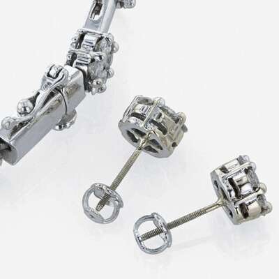 A diamond bracelet and matching diamond stud earrings