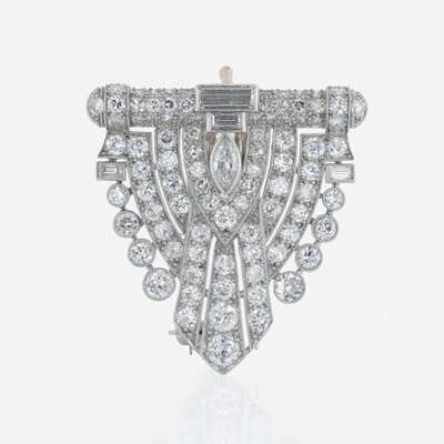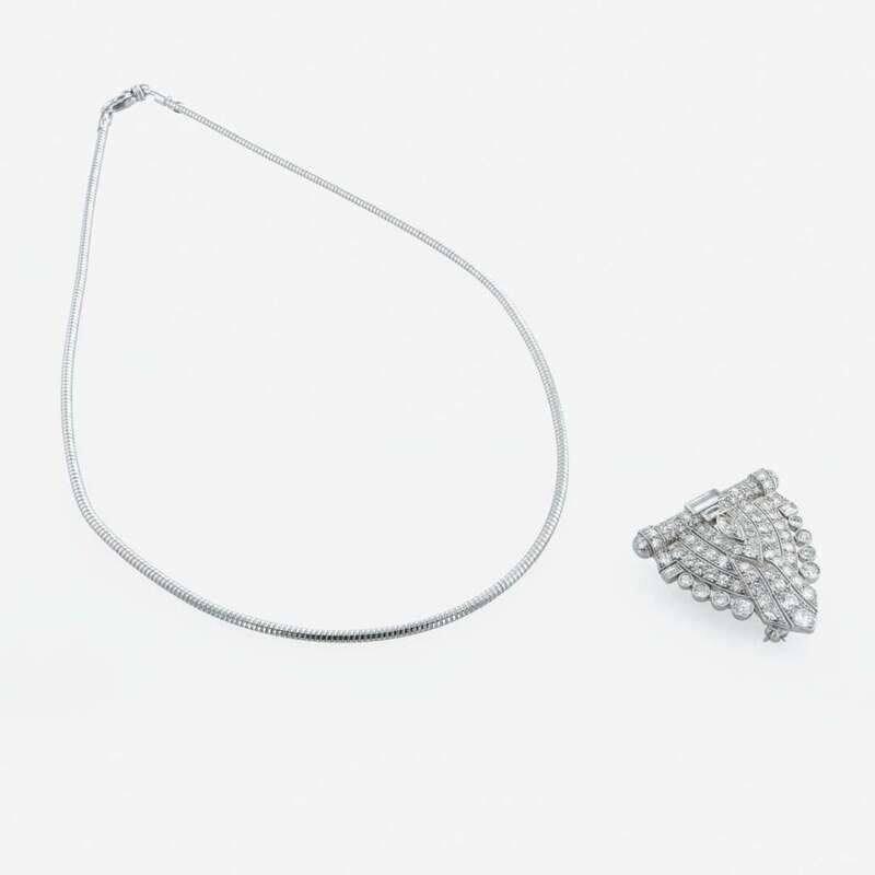An art deco, platinum and diamond dress clip - pendant, and necklace