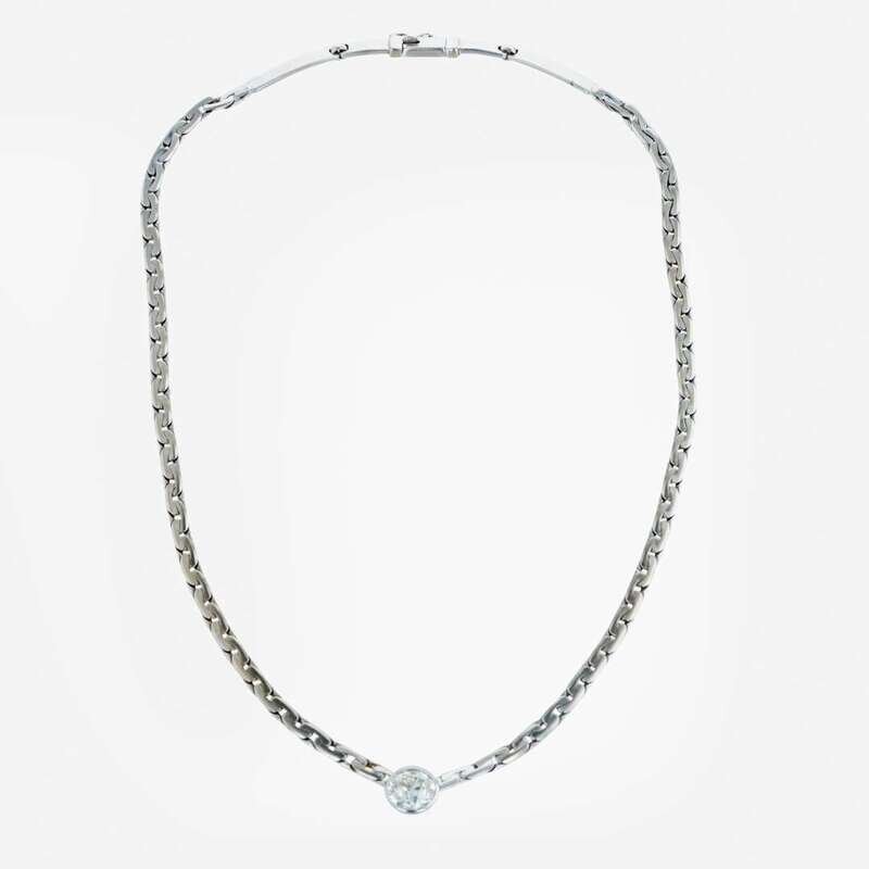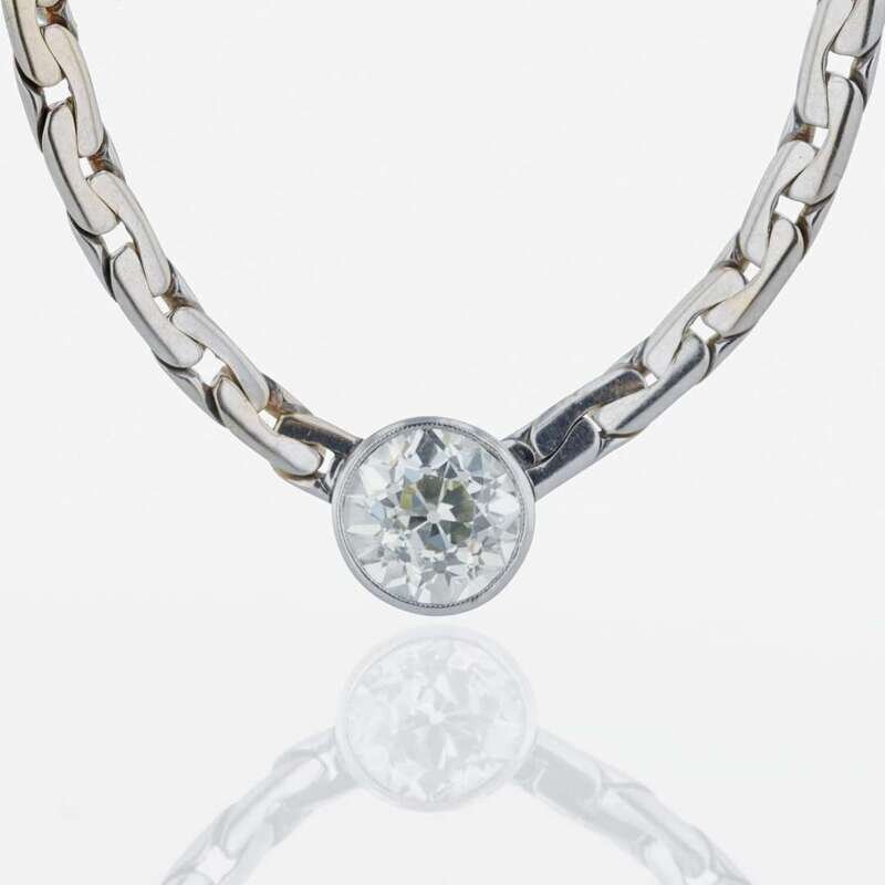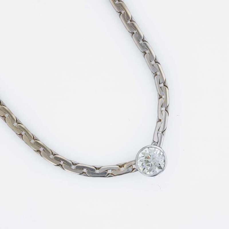 featuring a bezel set, round old European cut diamond with an estimated weight of approximately 2.00 carats.