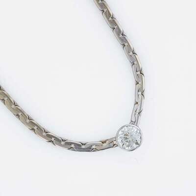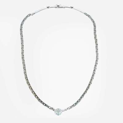 A 14K, white gold diamond station necklace