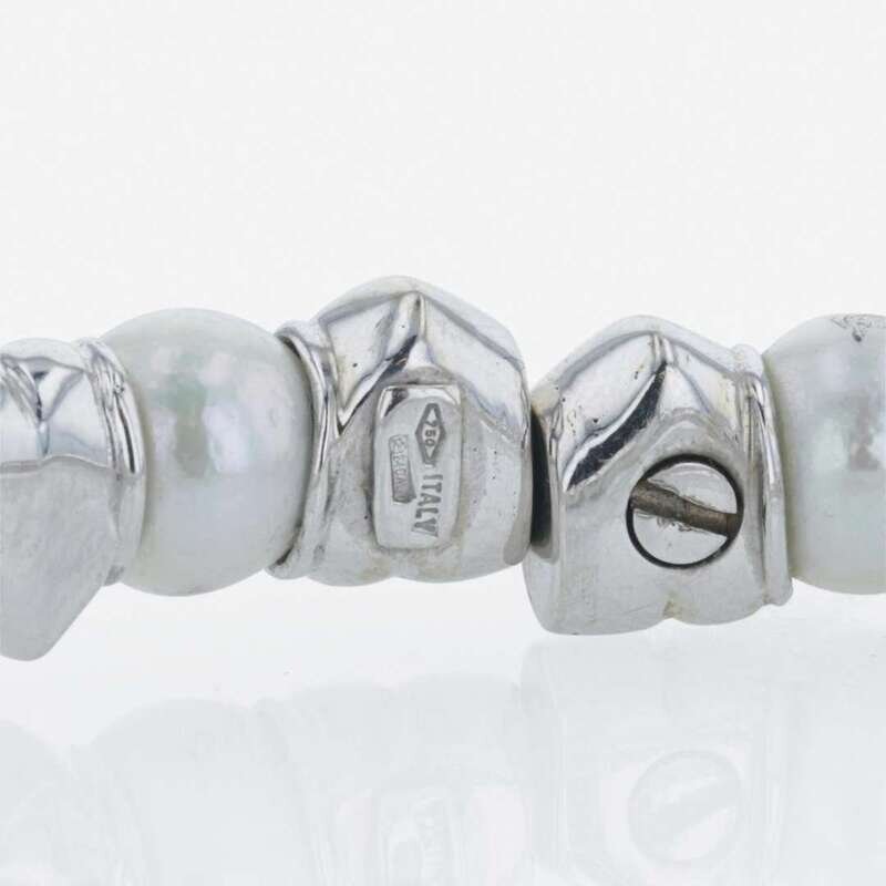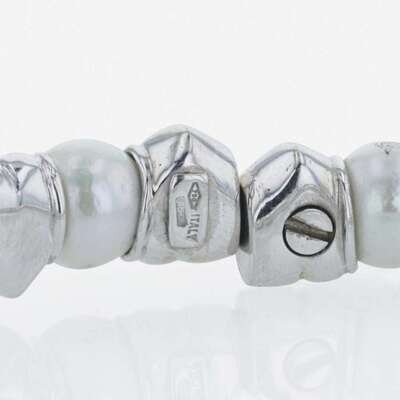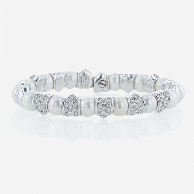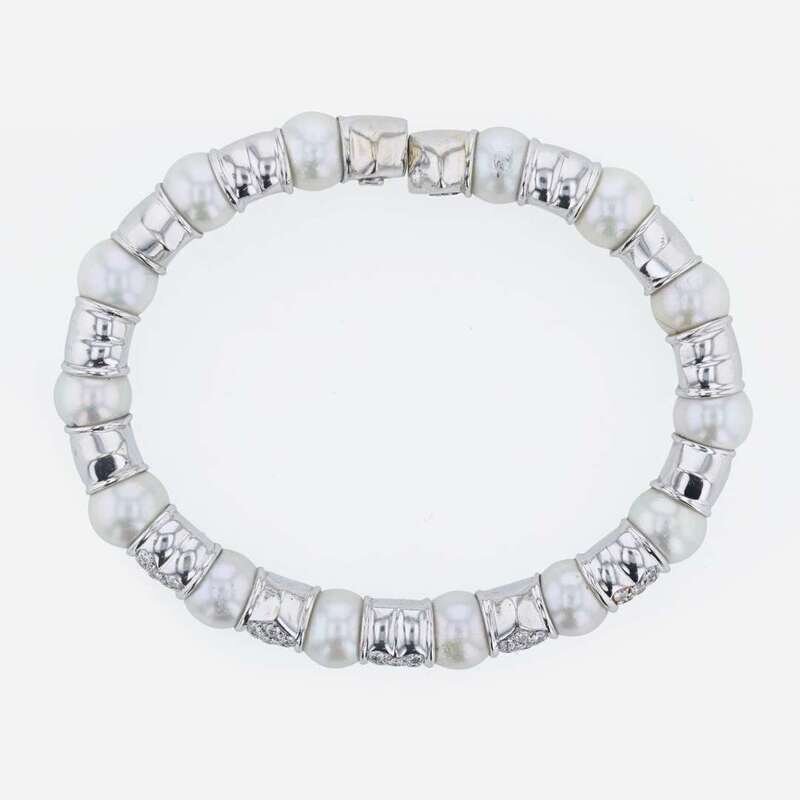 An 18K white gold, cultured pearl, and diamond bangle Italy