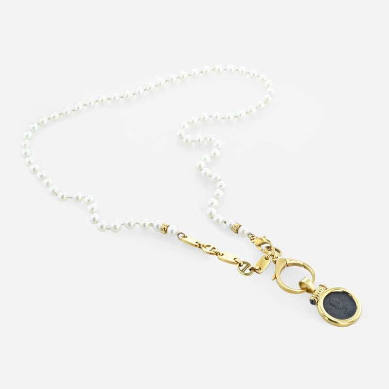 A contemporary 18K yellow gold, cultured pearl, and coin necklace Arezzo Italy