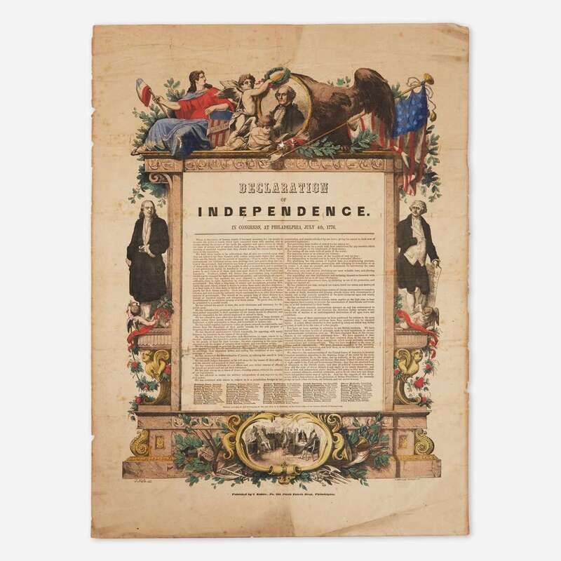 Philadelphia: I(gnaz). Kohler, 1855. First Kohler edition in English. Engraved broadside with hand-coloring. Engraved by H(ugh). Sebald after T. Nesle. 17 1/4 x 24 1/2 in. (438 x 622 mm). Creasing and scattered short closed tears along edges; light foxing in margins; creasing from contemporary folds, 4 in. closed tear, along top left corner fold. Bidwell 25; Earnest 48 (German-language edition)