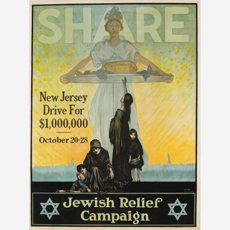 An October 7, 1919 article in The New York Times reports on this New Jersey drive: "Jewish Drive in Jersey: Plans of the American Jewish Relief Committee's campaign in New Jersey for funds for the destitute abroad were announced. New Jersey's quota is $1,000,000 and the drive will be made along non-sectarian lines, in keeping with the non-racial, non-sectarian policy of Jewish relief in the distribution of food, medicine and supplies abroad...The committee will go to Trenton on Thursday to present Governor Runyan the first poster of the campaign."