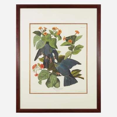 London: R. Havell, 1833. Hand-colored engraving with aquatint and etching, on J. Whatman watermarked paper, dated 1833. Engraved, printed, and colored by R. Havell after J.J. Audubon’s watercolor. 38 x 25 9/16 in. (97 x 65 cm). Sheet slightly trimmed; a few scattered surface abrasions, one restored within leaf in image, top right; light mat burn along edges; a few scattered spots; scattered light surface soiling. In mat and in frame, 40 5/8 x 31 3/4 in. (103 x 81 cm). Low, p. 113, Variant No. 2